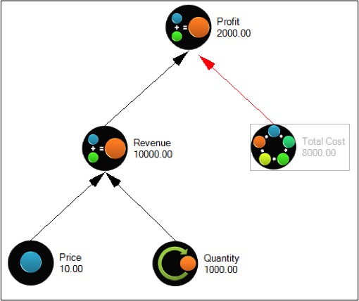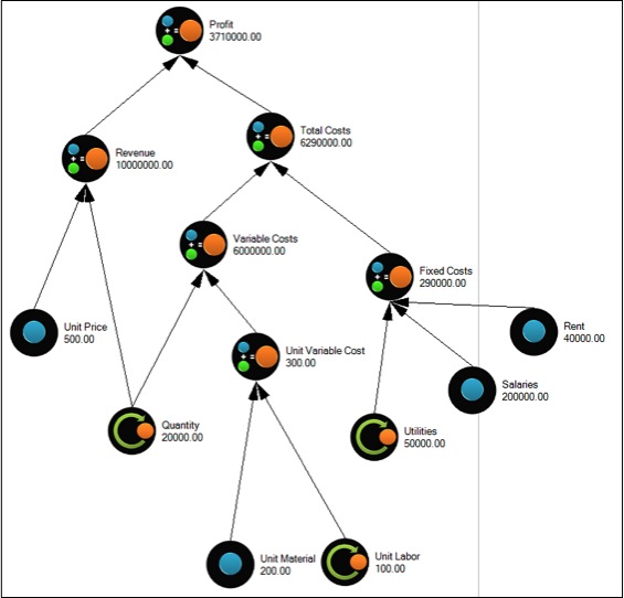 Variable: Objects whose values are defined by formulas such as Revenue and Profit.