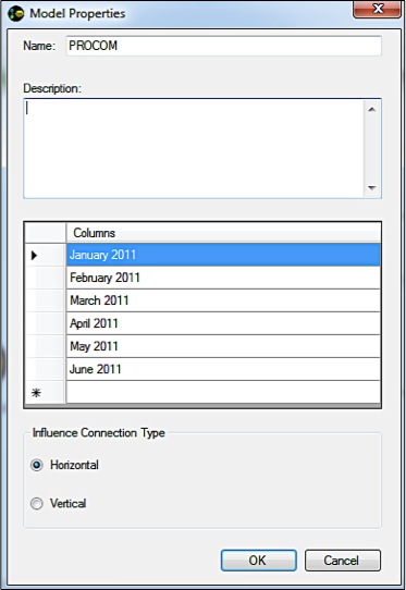 Once the Model Properties dialog box is open, one can make changes in the model such as adding new columns to the model or reducing the number of columns in the model. For example, a model could be from January to December and the user might decide to change it from January to June. The user can delete 6 months here by clicking on the appropriate column rows.
